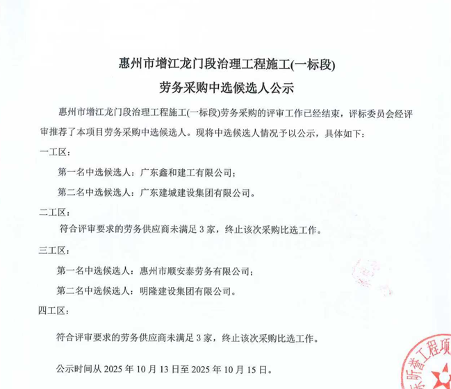 惠州市水電建筑工程有限公司勞務(wù)供應(yīng)商庫擴(kuò)庫評審結(jié)果公示……